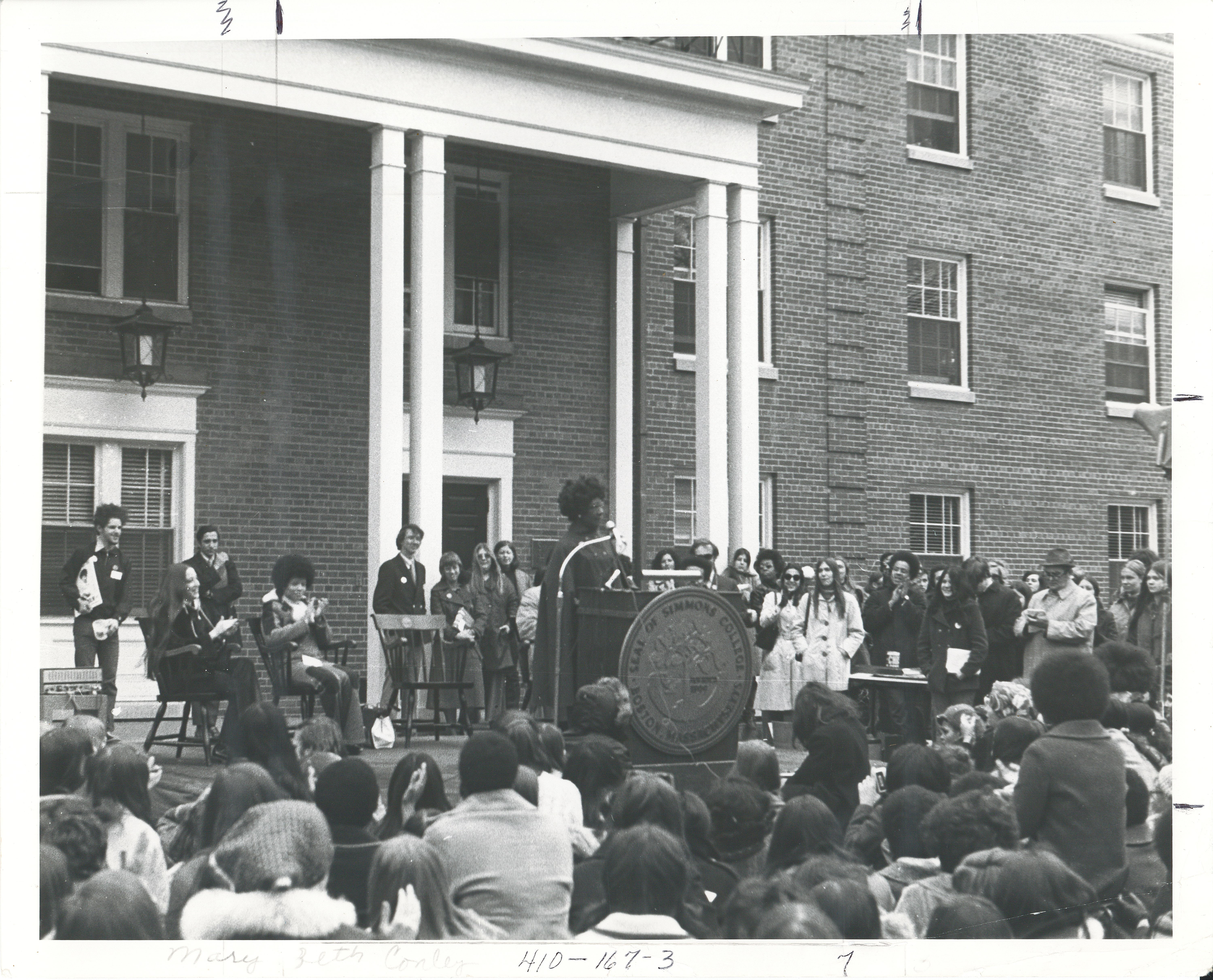 “Shirley Chisholm speaking at the podium in front of Smith Hall during an Influencers Speakers program, 1977.,” Buildings@Simmons, accessed March 15, 2026, https://beatleyweb.simmons.edu/buildings/items/show/100.