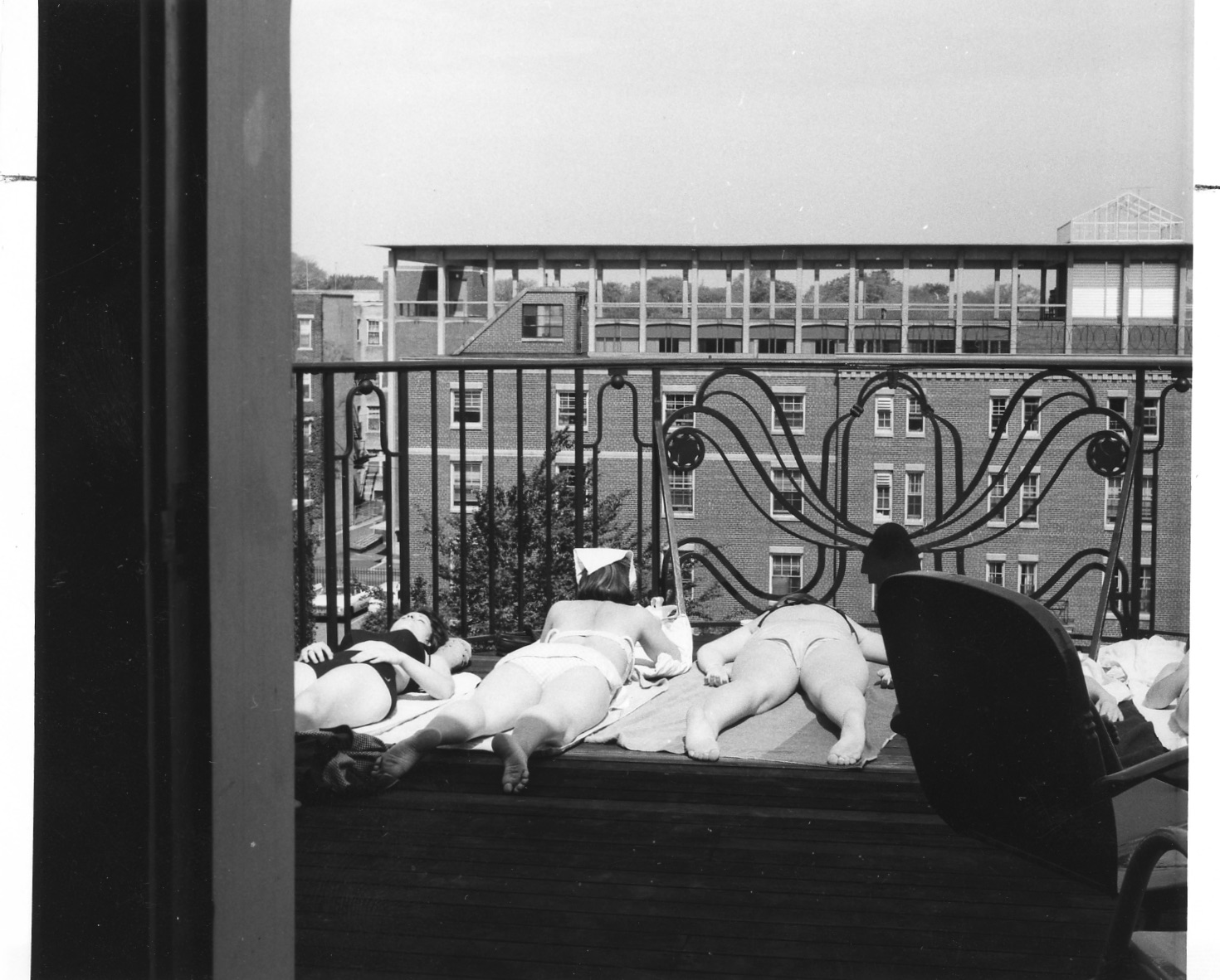 Evans Hall opened on May 25, 1939, and was the most popular dorm at the time, with larger rooms than those in the smaller dormitory houses. It provided beds for 72 upperclass students, and was the beginning of Simmons’ evolution from a commuter school to a residential college. Students often used the Evans Hall balcony as a sunning spot.